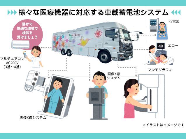 検診車むけ車載蓄電池システムは